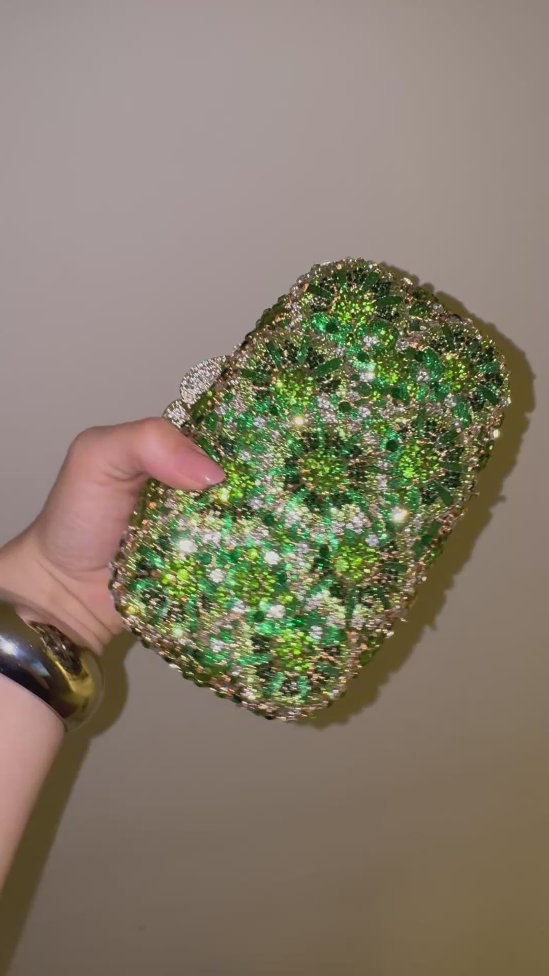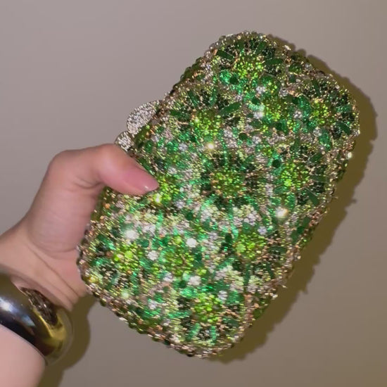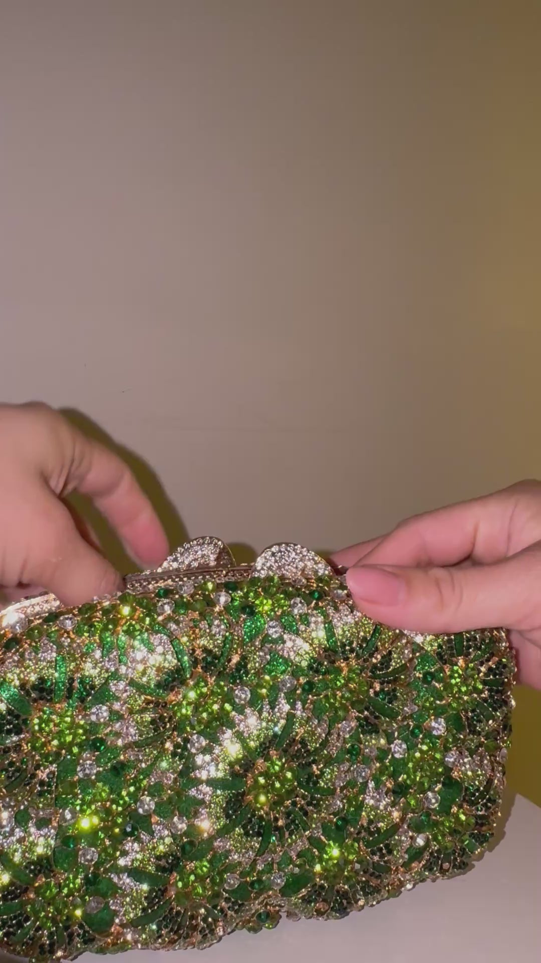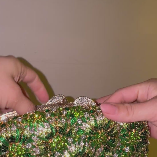Bolso de mano con piedras de imitaciónón cristal para mujer, forma rectangular con diseño floral. Ideal para eventos formales de día y noche.