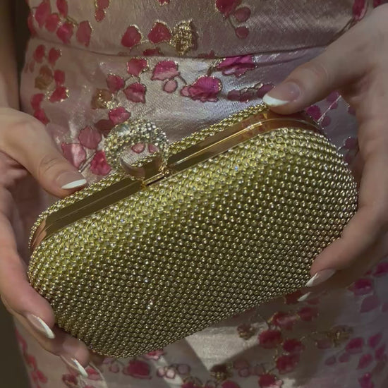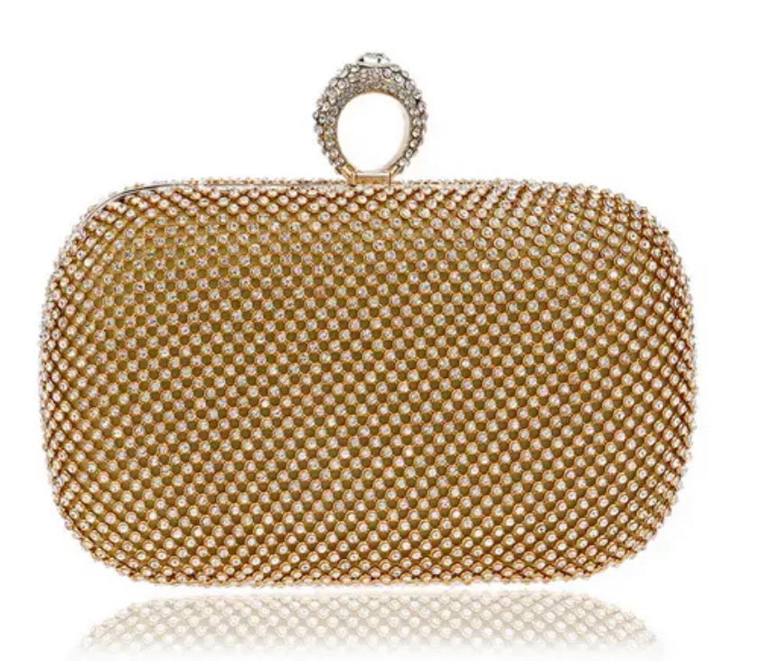 Bolso de noche con diamantes de imitación y anillo de dedo para mujer. |