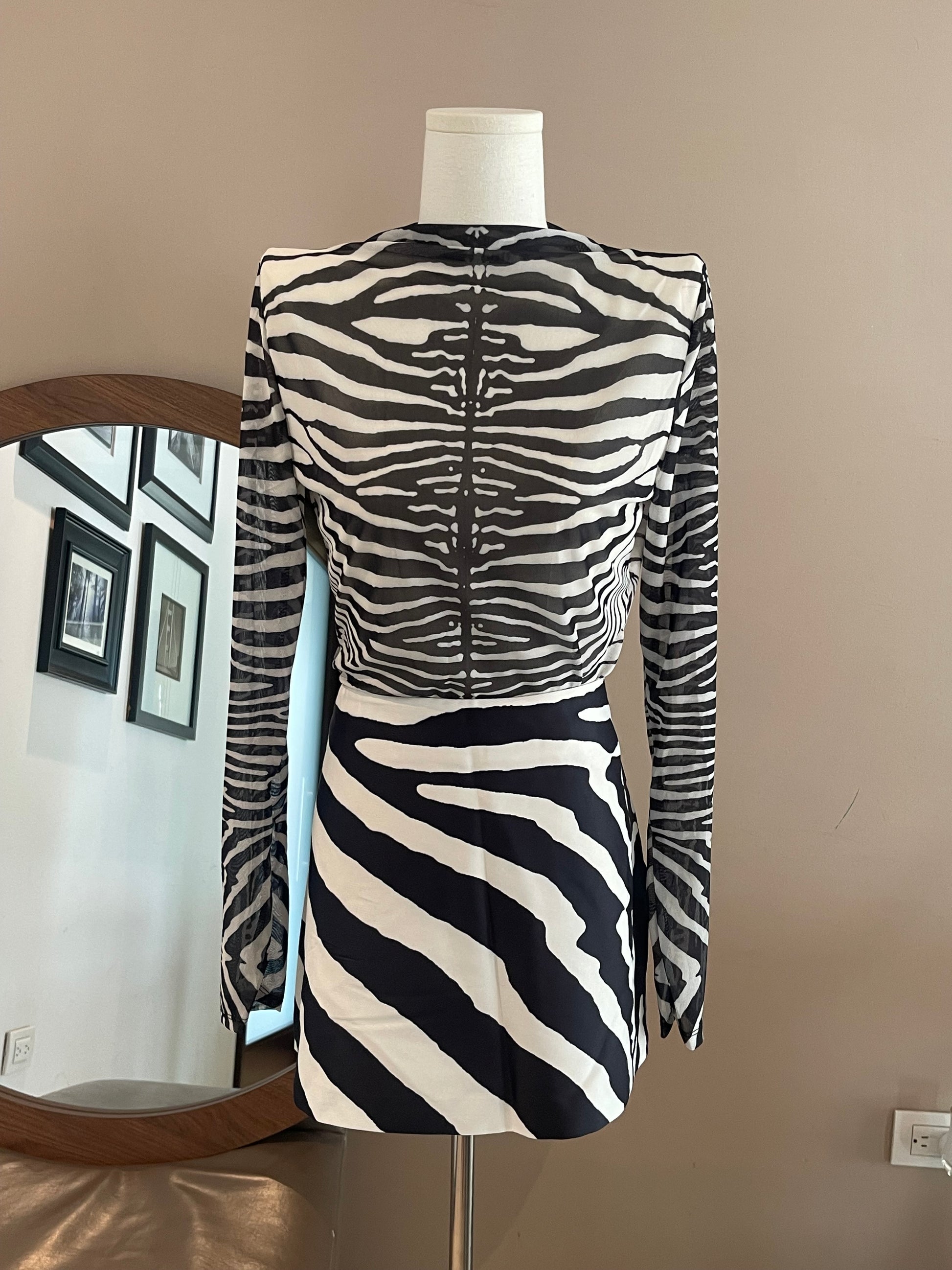 Conjunto de blusa manga larga de malla y mini falda en estampado de zebra
