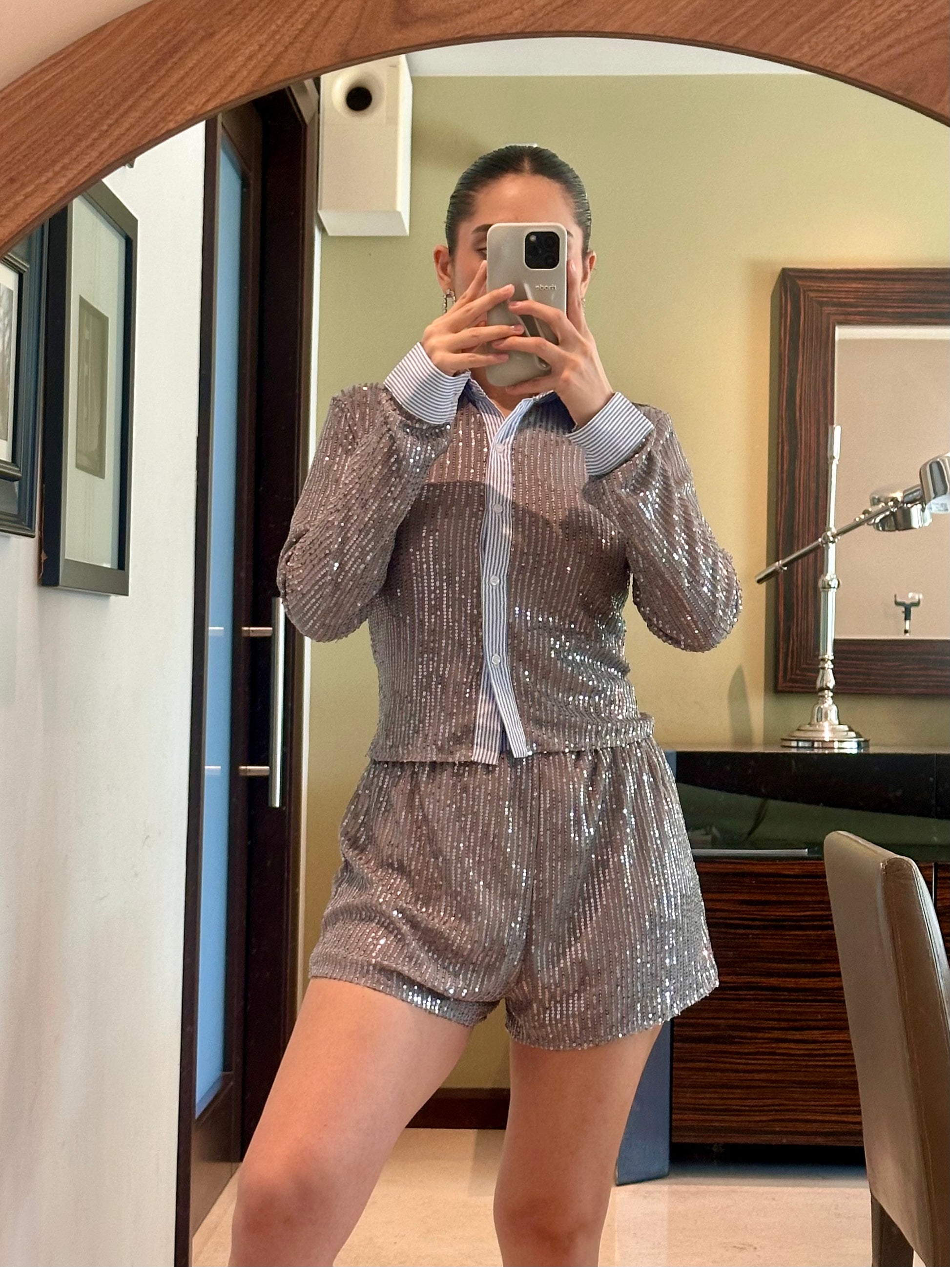 Conjunto de lentejuelas color plata con detalles T-shirt blue stripes