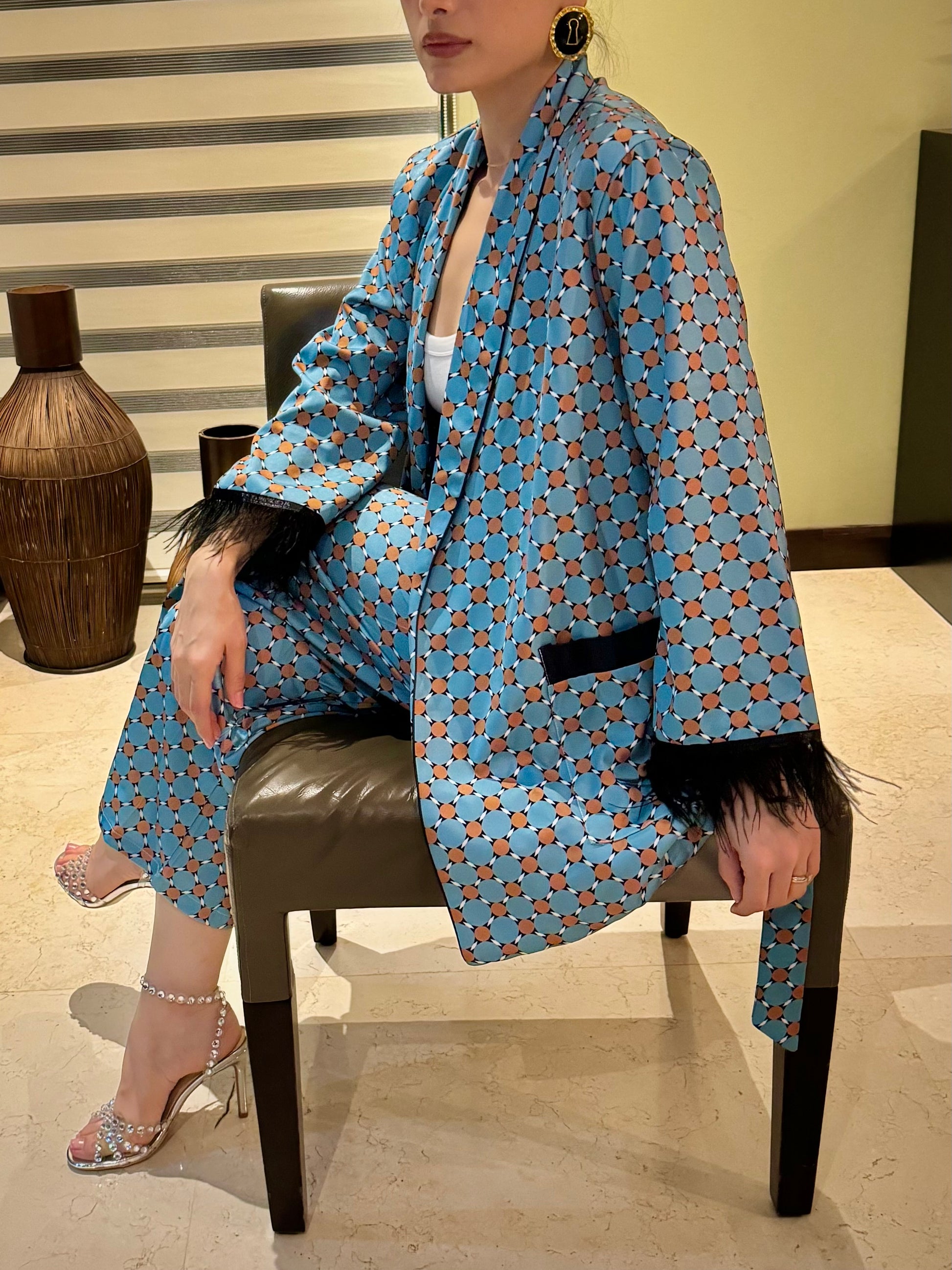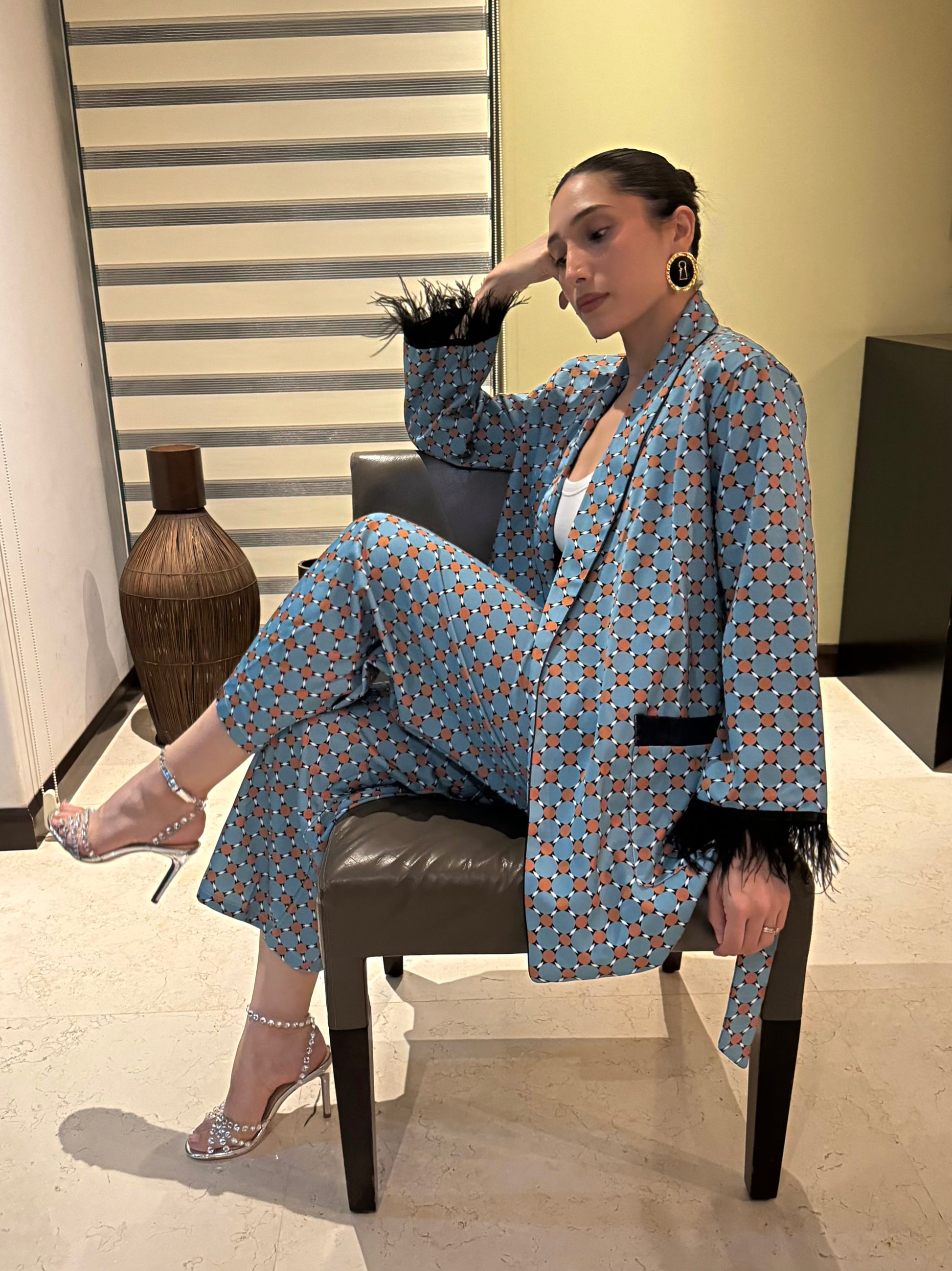 Hermoso conjunto de seda pantalón y blusa botones, cómodo y elegante con un lindo estampado.