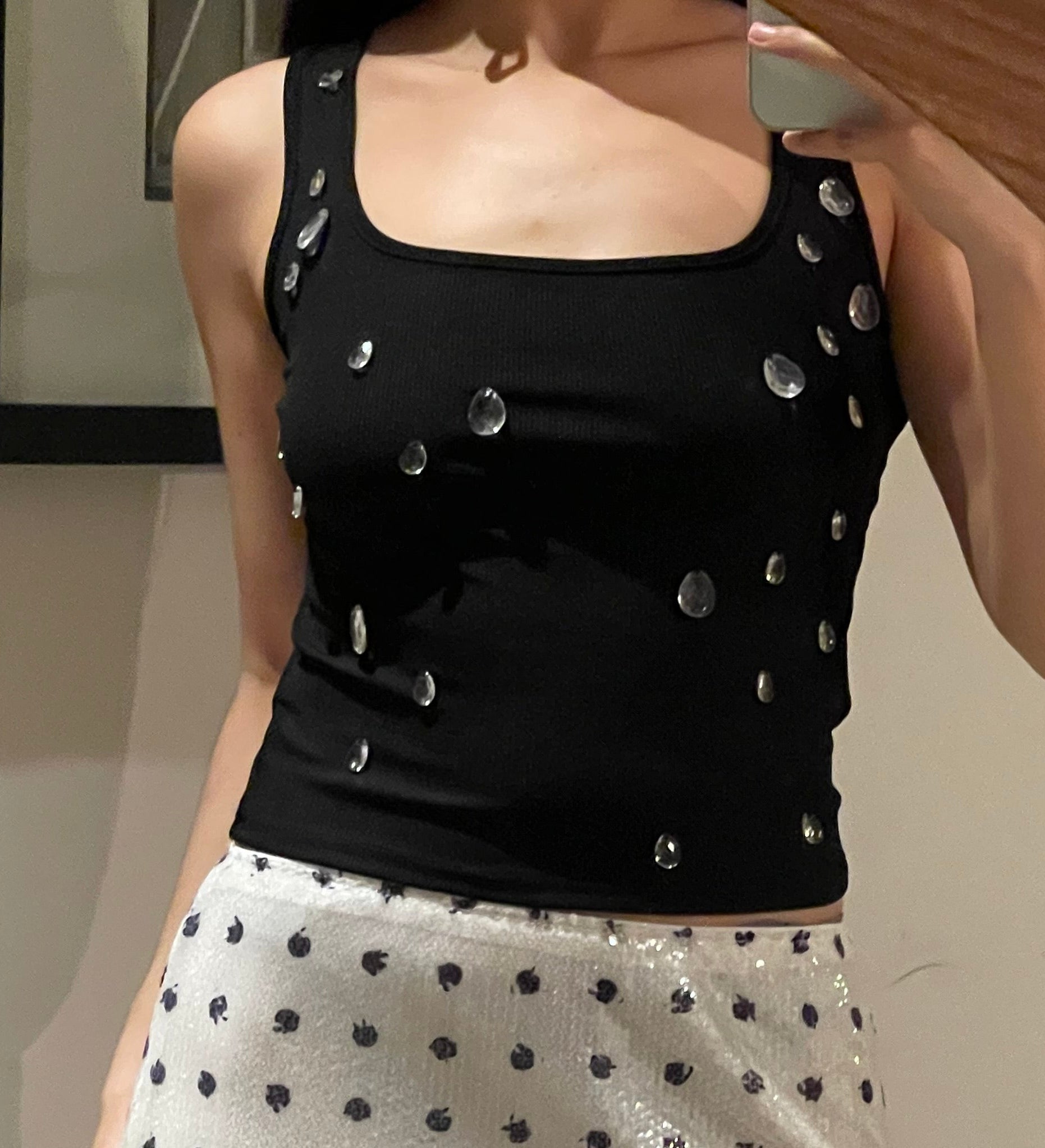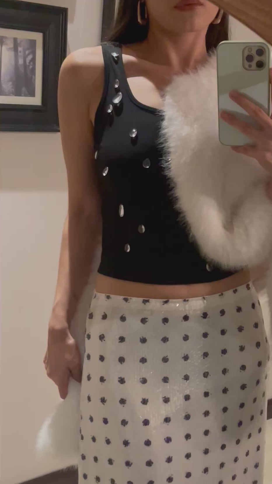 Falda MIDI de puntos blanco y negro en lentejuela