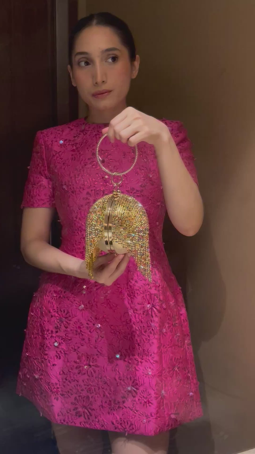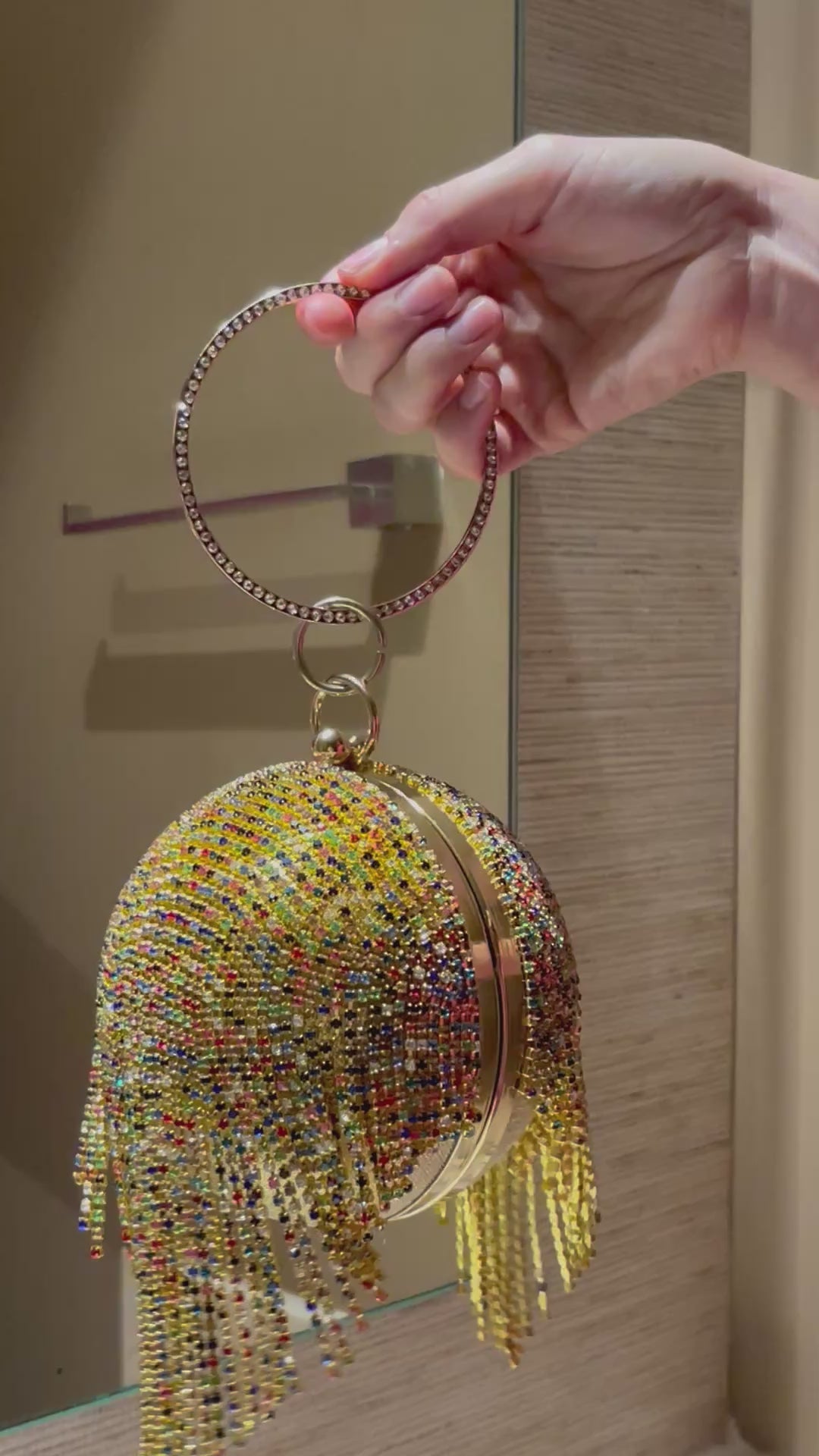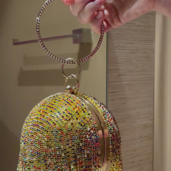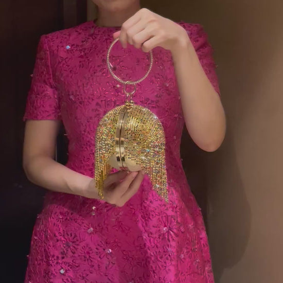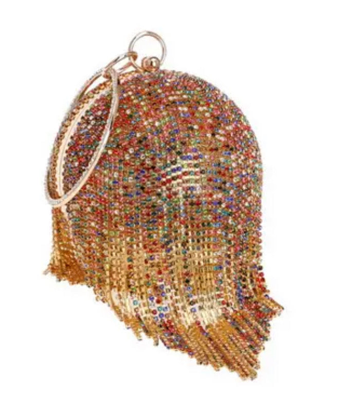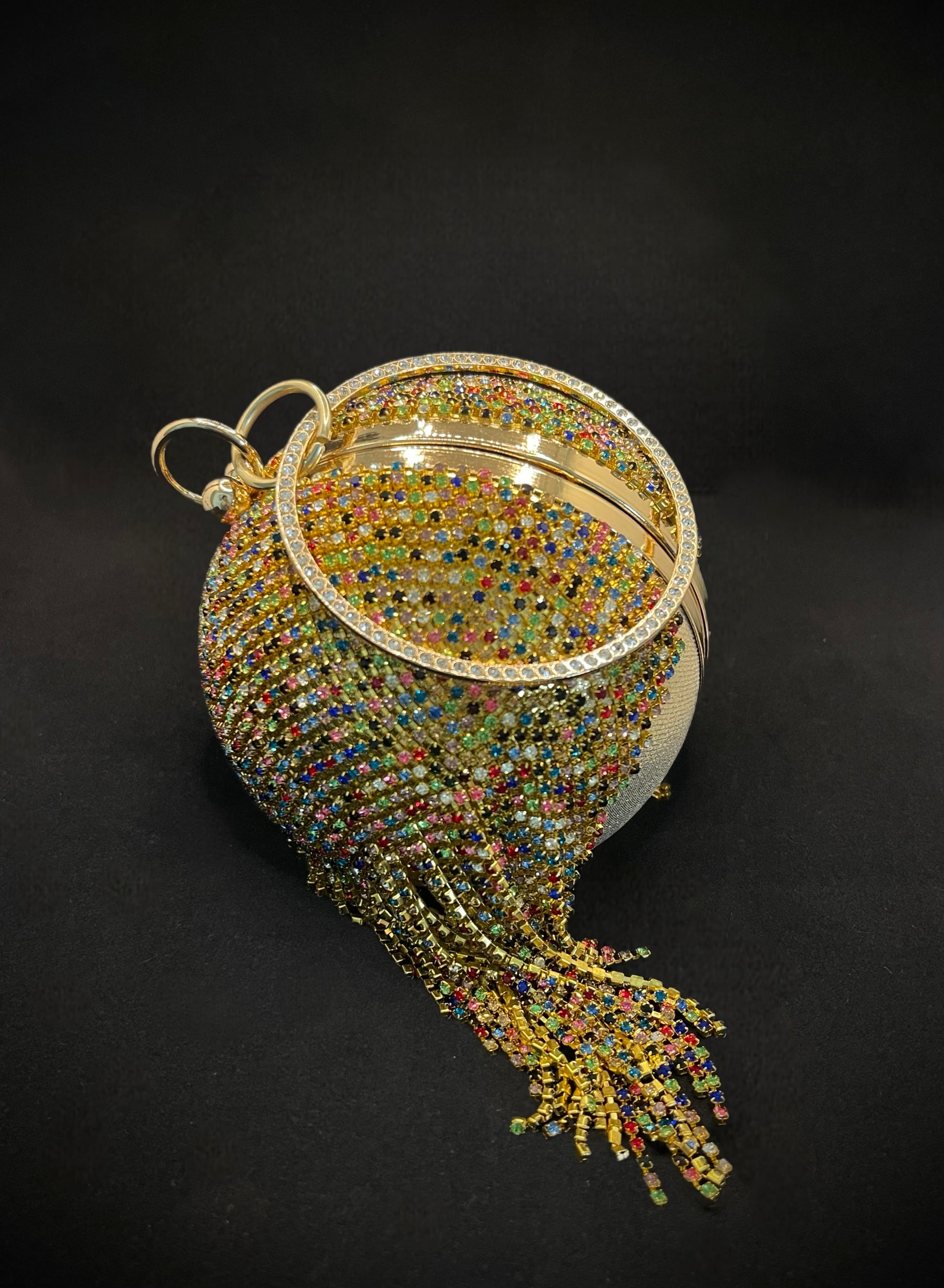 Bolso de mano con borla de diamante para mujer, de forma bola circular. |
