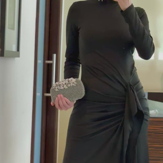 Vestido color negro apertura